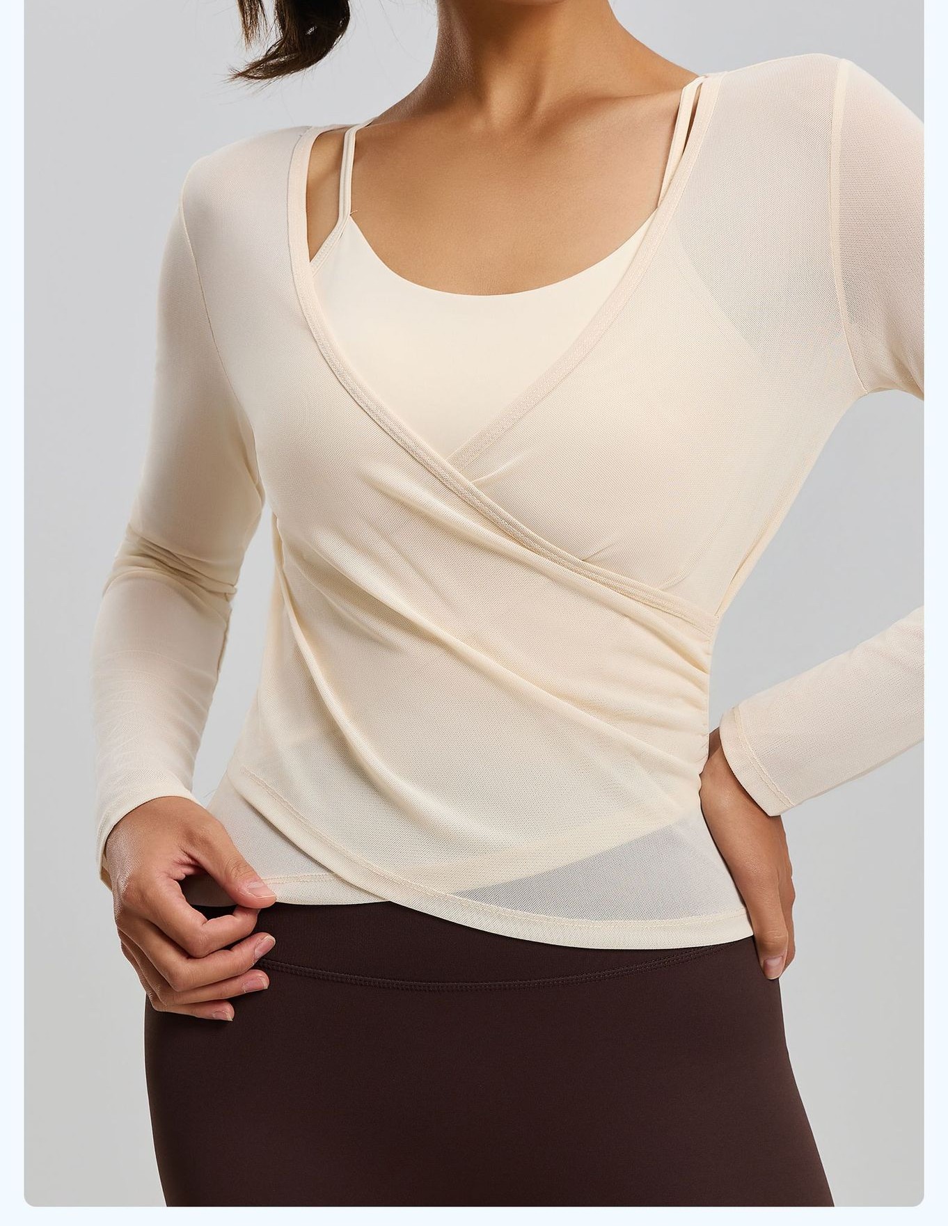 • Crossover Wrap Style: The elegant wrap front and back details add a feminine touch, flattering your silhouette and pairing perfectly with sports bras.