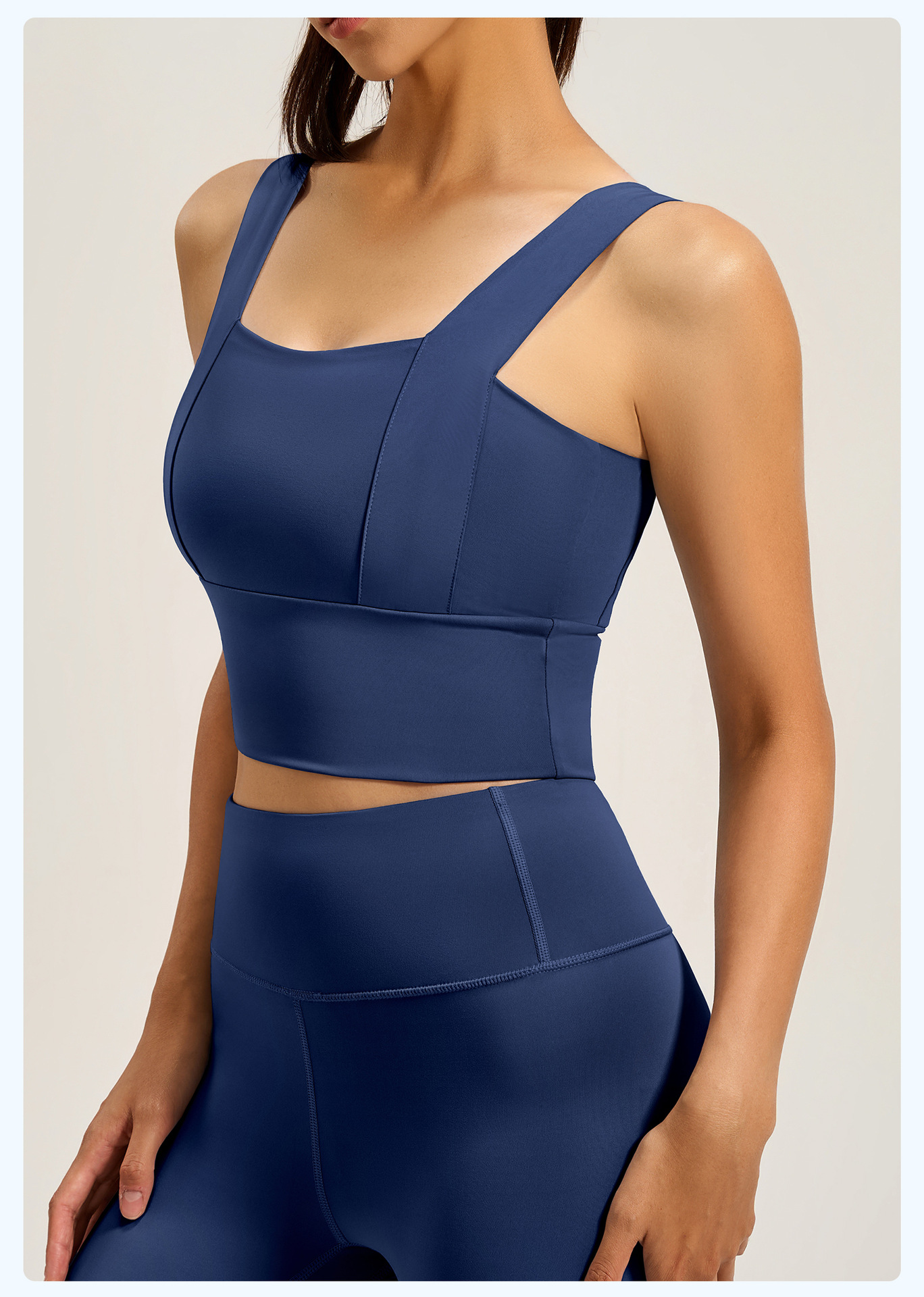 Women’s Square Neck Workout Bra, High Support Wide Strap Gym Top, Navy Blue